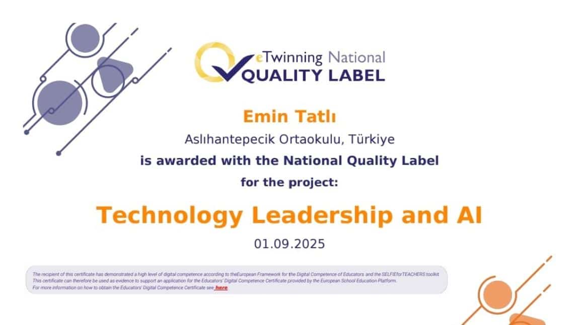 eTwinning Projemize Ulusal Kalite Etiketi Ödülü